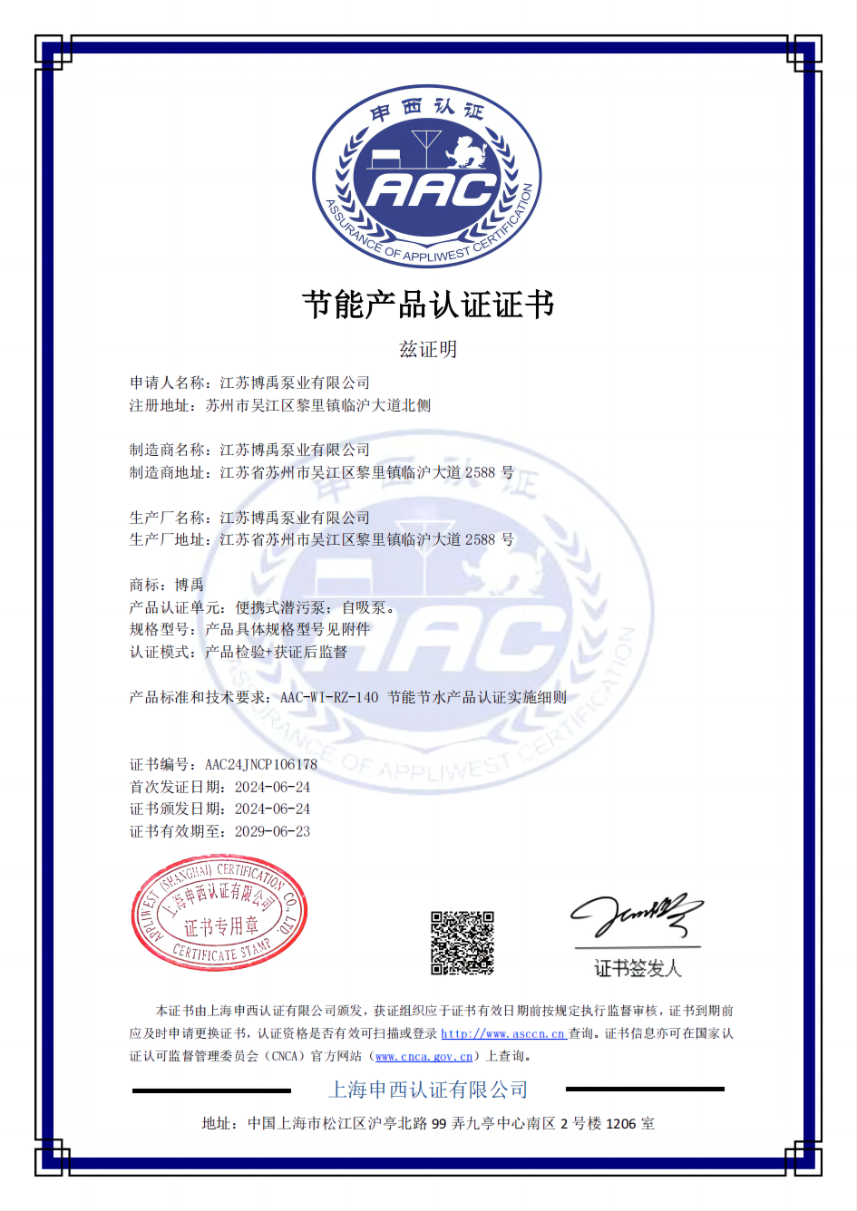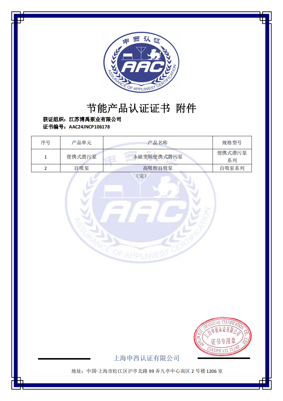 博禹公司節(jié)能產(chǎn)品認(rèn)證證書認(rèn)證的產(chǎn)品主要有便攜式潛污泵、永磁變頻便攜式潛污泵、自吸泵、高吸程自吸泵等產(chǎn)品。